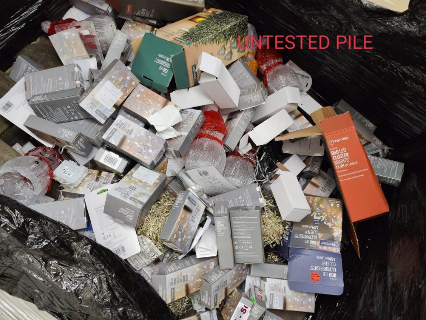 Approximately 150 boxes on the pallet,tested 80 of them,50 worked,30 faulty,including 3 led trees