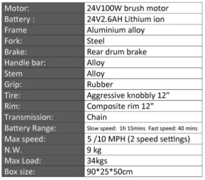 -Specially designed rear wheel with free wheels system, this allows the bike to be used as a conventional balance bike with out the power.