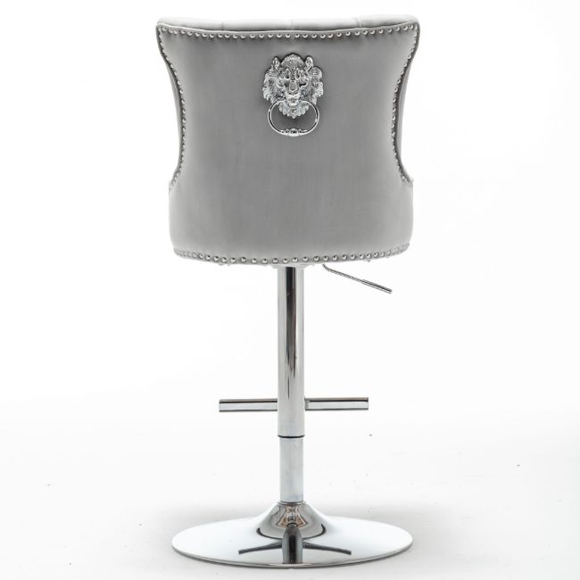 This Barstool has an immediate effect with the Lion knocker and stud detail. With a pleated inner design, this chair has all the premium qualities in one. With the velvet fabric this provides a soft touch and adds to the soft sit.