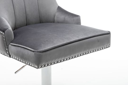 HIGH END DARK GREY BARSTOOL - VELVET FABRIC - PLEATED INNER - BS-111 DA/GR