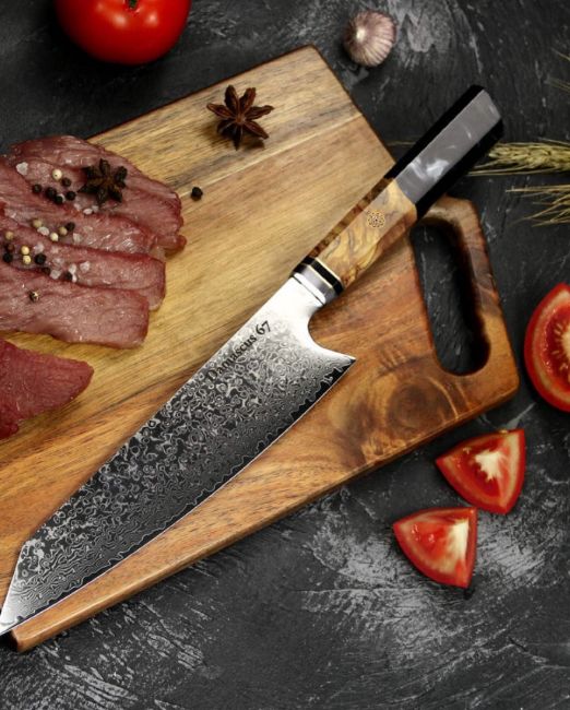 5 x Black and Crimson 8 inch damascus steel knives with sheaths