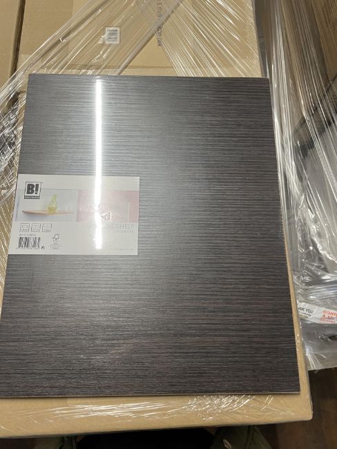 (RW / PLT 41) - 166 x Brand New B!organised Hudson Oak Slimline Office Shelf - 40cm x 33cm x 0.9cm