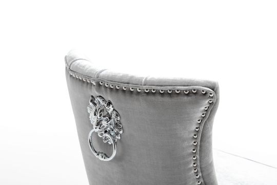 This Barstool has an immediate effect with the Lion knocker and stud detail. With a pleated inner design, this chair has all the premium qualities in one. With the velvet fabric this provides a soft touch and adds to the soft sit.