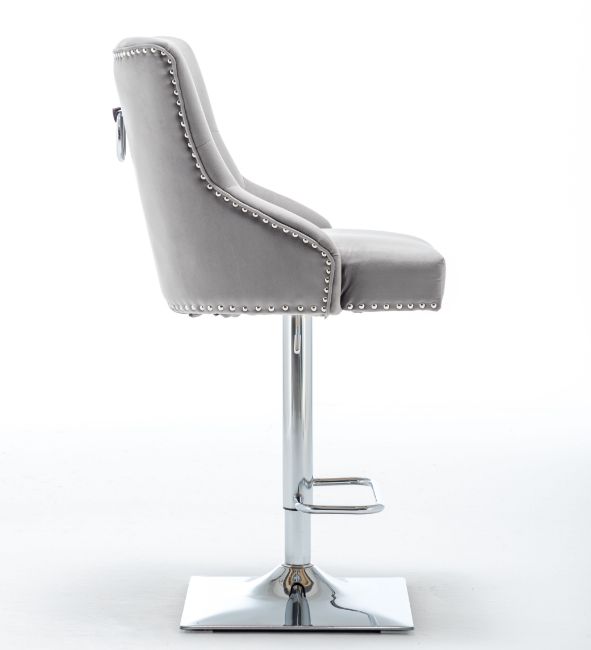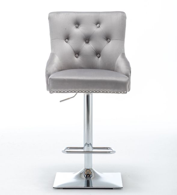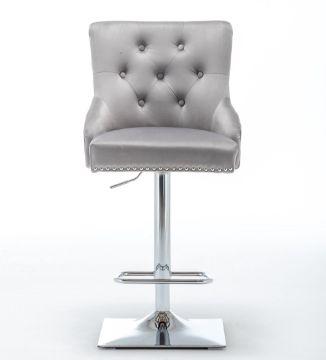 HIGH END LIGHT GREY BARSTOOL - VELVET FABRIC - SEAM DETAIL - BUTTON BACK INNER - BS-899LI/GR
