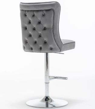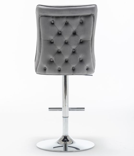 HIGH END DARK GREY BARSTOOL - VELVET FABRIC - SEAM DETAIL - BUTTON BACK - BS-200 DA/GR