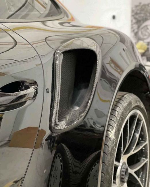 GT2RS lightweight Carbon Fibre wings/fenders, bonnet, side skirts, chin spoiler and front bumper canards, rear wing and brackets, rear bumper diffuser and rear arch air ducts.