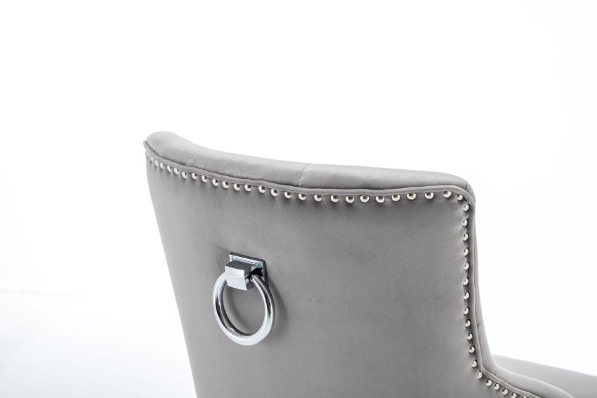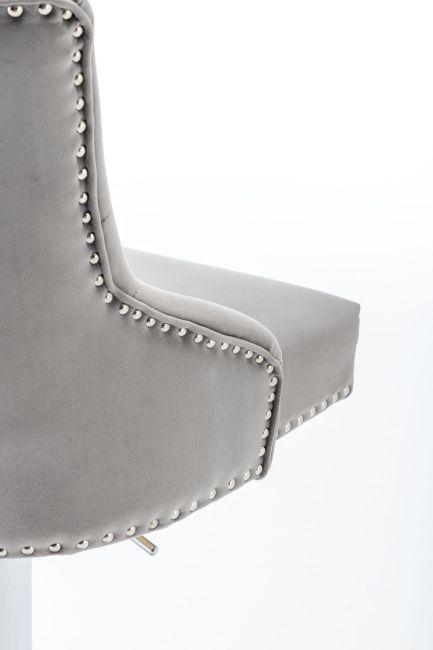 HIGH END LIGHT GREY BARSTOOL - VELVET FABRIC - SEAM DETAIL - BUTTON BACK INNER - BS-899LI/GR