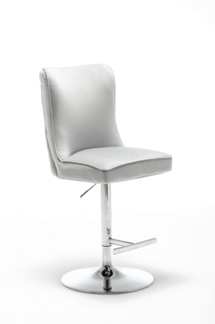 HIGH END LIGHT GREY BARSTOOL - VELVET FABRIC - SEAM DETAIL - BUTTON BACK - BS-200 VVLI/GR