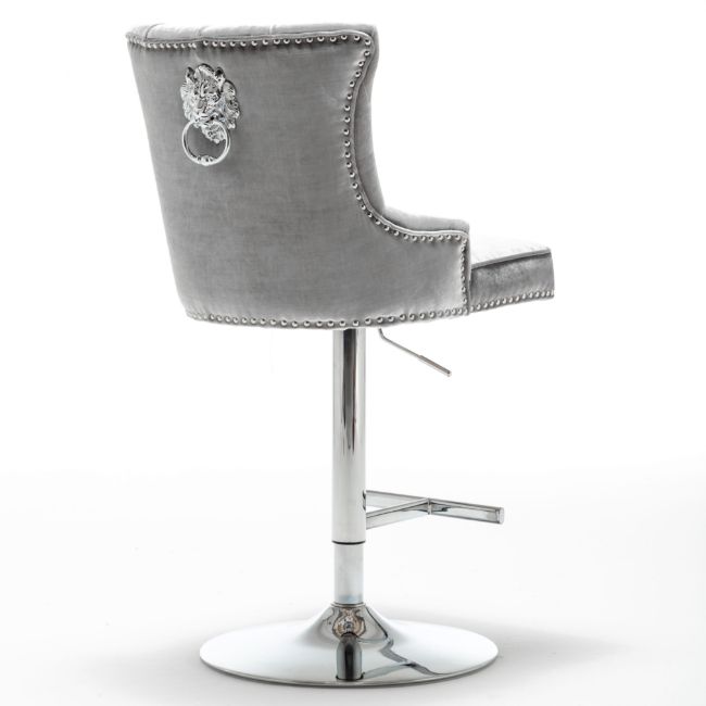 This Barstool has an immediate effect with the Lion knocker and stud detail. With a pleated inner design, this chair has all the premium qualities in one. With the velvet fabric this provides a soft touch and adds to the soft sit.