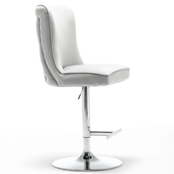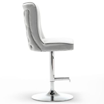 HIGH END LIGHT GREY BARSTOOL - VELVET FABRIC - SEAM DETAIL - BUTTON BACK - BS-200 VVLI/GR
