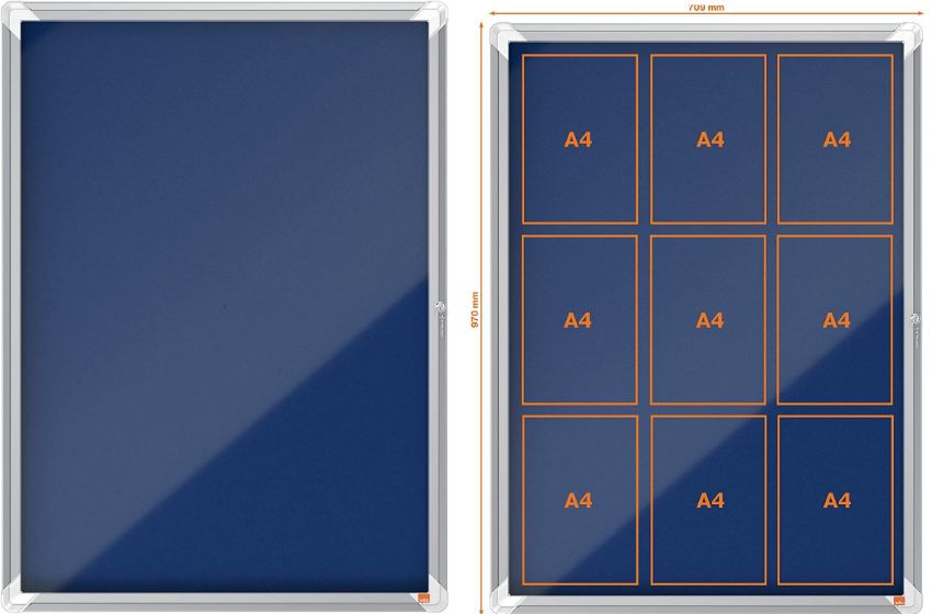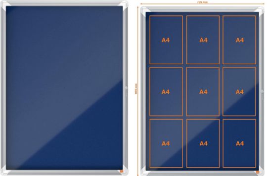 14 x Nobo Pacific Blue Felt Lockable Notice Boards Fits 9 x A4