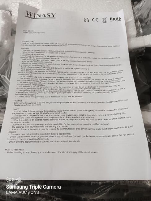 (L78) - 1 Pallet Containing approx 24 Winasy Quartz Patio Heaters