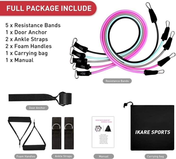 bands3XExercise Resistance Bands Set for , Home Gym Fitness Workout Bands 11PCS with Fitness Tubes, Foam Handles, Ankle Straps, Door Anchor, Carrying Pouch for Yoga, Physical Therapy, Up to 100 lbs