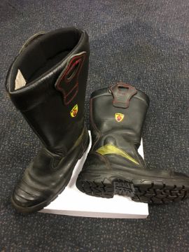 Dual Density Rubber (DDR) Sole * Fire Retardent Threads and stitching Throughout * Steel Toe Protector * Slip Resistant Rating