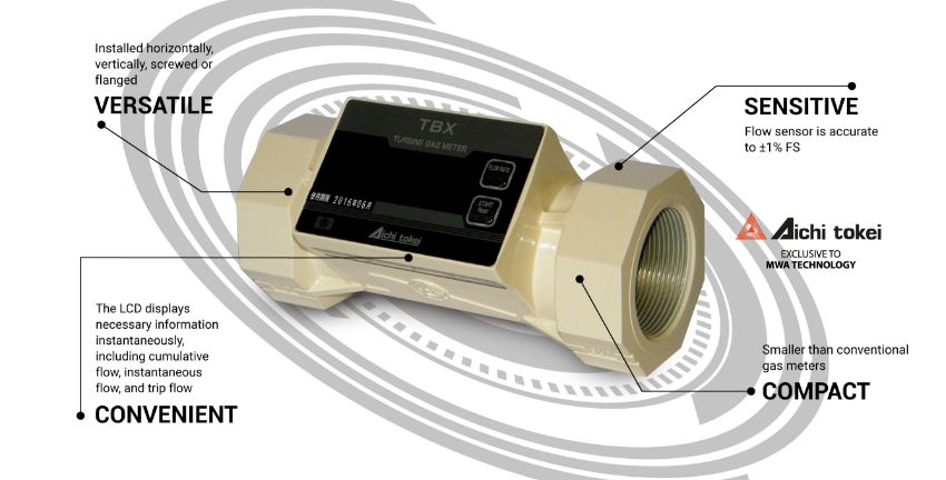 The Aichi TBX low pressure drop range of gas turbine meters was developed by Tokyo Gas Engineering to control and manage gas flow into gas burning appliances such as boilers, furnaces and burners.
