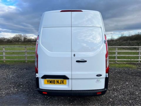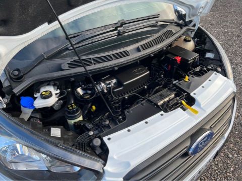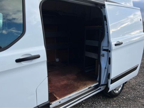 2018 18 reg facelift ford transit custom 2.0 Tdci swb 130 bhp high roof 300 L1 H2 fwd EURO 6 ulez van 6 speed manual in factory ford solid frozen white with unmarked 3 seat cloth trim. This van comes with electric tinted windows, ford sync Bluetooth, ford radio with aux/usb input, multi function steering wheel, remote central locking, side loading door, ply lined rear, removable racking, factory steel bulkhead factory wheel trims with recent tyres