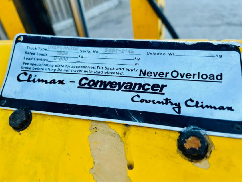 COVENTRY CLIMAX ROUGH TERRIAN DIESEL FORK LIFT C/W PALLET TINES & TOE TIP BUCKET