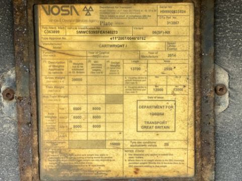2014 Cartwright 4486mm Curtainside Trailer, BPW tri-axle on air suspension, drum brakes, galvanised chassis, rear barn doors, 3,03m loading height through the rear, XL rated curtains, raise lower valve, Jost legs, MOT December 2023, excellent condition.