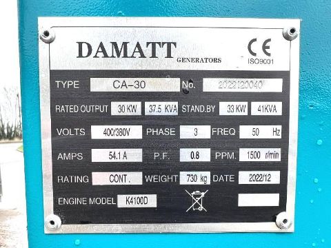 BRAND NEW UNUSED DEMATT CA-3041KVA GENERATOR * YEAR 2022 *