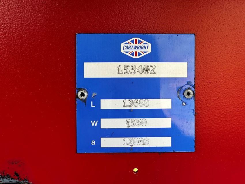 2015/2016 Cartwright 4556mm Curtainside Trailer, BPW tri-axle on aiairr suspension, drum brakes, rear barn doors, 2.87m loading height through the rear, XL rated curtains, raise lower valve, Jost legs, Trailer Info Module, MOT October 2023
