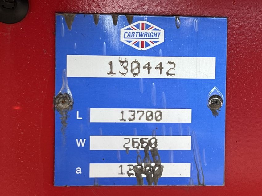 2013 Cartwright & SDC 4550mm Curtainside Trailer, BPW tri-axle on air suspension, drum brakes, 9ft 6inch side loading height, rear barn doors, 2.874m loading height through the rear doors, XL rated curtains, raise lower valve, Fontaine legs, Trailer Info Module, MOT April 2023