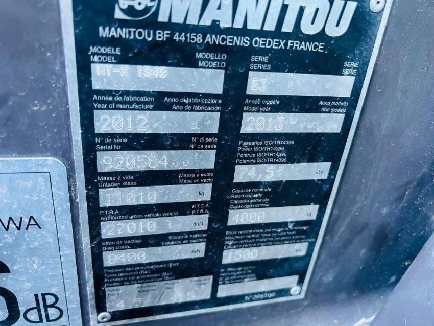MANITOU 1840 4WD TELEHANDLER * YEAR 2013 , 18 METER REACH * C/W PALLET TINES