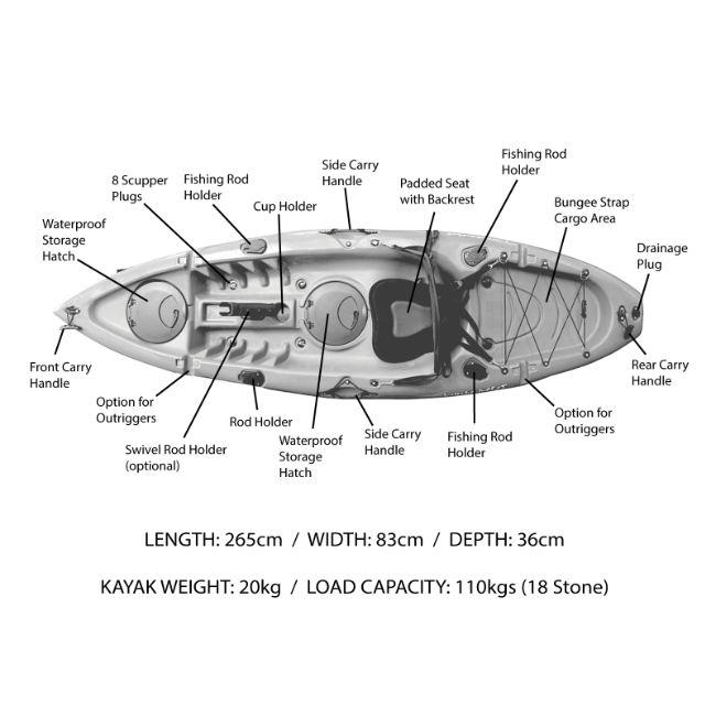 All of our kayaks come complete with a deluxe padded seat and a lightweight paddle that splits in two. Our kayaks are made from top LLDPE material providing maximum resistance and durability whilst maintaining lightweight performance and manoeuvrability.