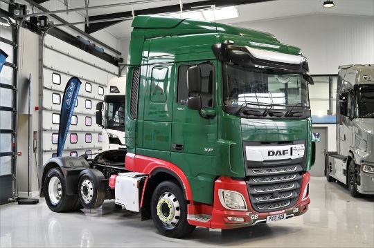 2018 (18) DAF XF480 Spacecab, Euro 6, 6x2 small wheel midlift, 3.8m wheelbase, Alcoa alloy wheels, automatic gearbox, engine brake, 510L fuel capacity, AdBlue tank behind the cab, fixed 5th wheel, rear mounted batteries, catwalks, visor, high sleeper cab, twin bunk, fridge, air con, Stereo/USB/AUX/Satnav, MOT July 2023, excellent condition.