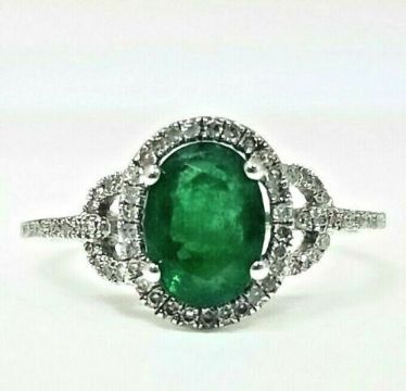 Make her eyes light up with this stunning emerald ring which features approx 1.20CT oval solitaire emerald. Which is showcased within a beautiful collection of dazzling Quality Diamonds . The 18K white diamond band enhances the clarity of the emerald and diamonds and completes the ring brilliantly.