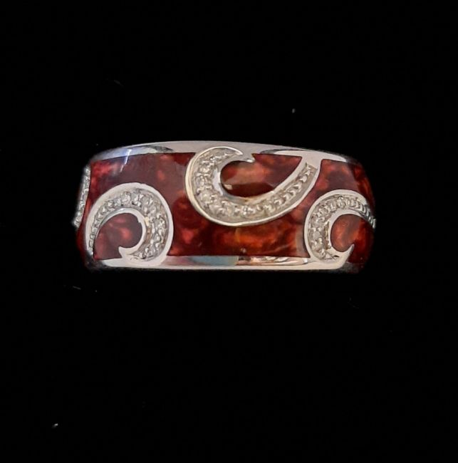 The diamonds form four swirl affects and finished with highly polished Stirling silver.  Width 7mm