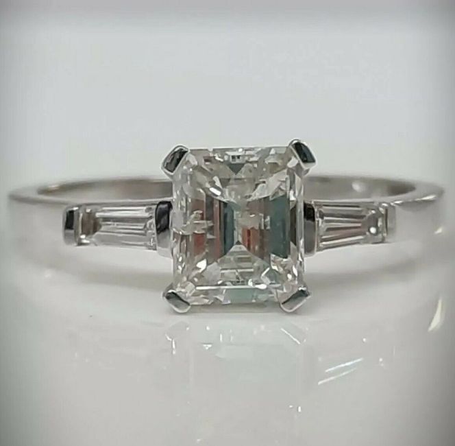 Enjoy the bold styling of mixed diamond cuts in a classic three-stone diamond ring design with this stunning beauty, featuring a dazzling claw set Emerald Cut center stone 1.00 CT flanked on either side by two sparkling 0.19 Baguette Cut diamonds, which are all beautifully held in a stylish bar setting. A timeless design with a modern twist, this unique three-stone diamond ring has been crafted in 18ct white gold. Hallmark:750