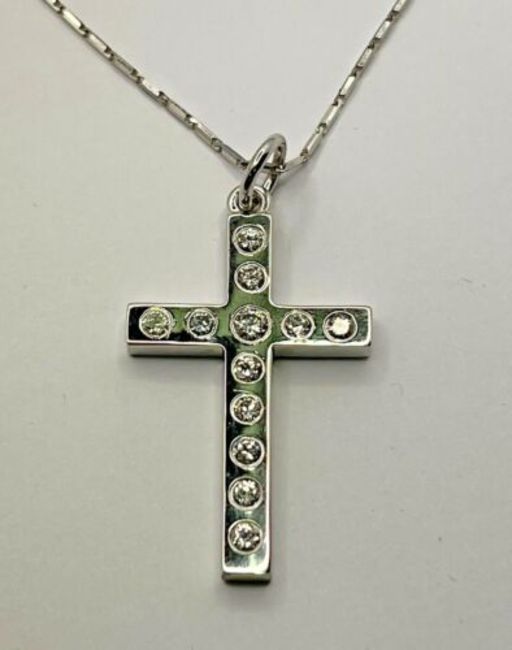 The cross has twelve natural 1.30ct Diamonds encased in solid 18ct white gold.