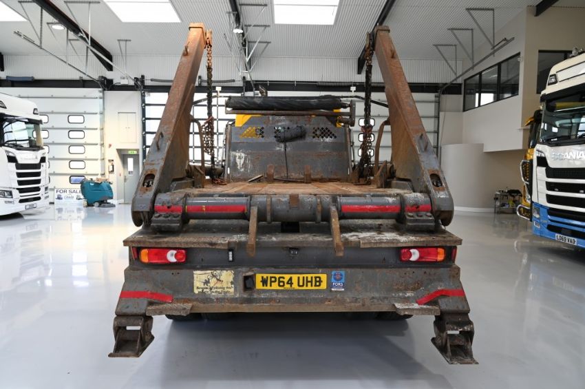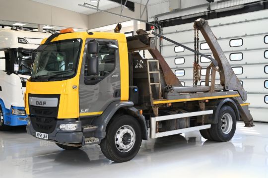 2015 (64) DAF LF250 Skip Loader, Euro 6, AdBlue, 4x2 axle on steel suspension, 3.7m wheelbase, manual gearbox, Hyva skip loading equipment, light guards, upright exhaust, easy sheet, storage lockers, steel bumper, visor, roof beacons, day cab, rear window, 2 seats, air con, onboard weighing system, camera system, DAF stereo, MOT December 2022, great condition. Choice available.