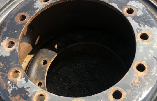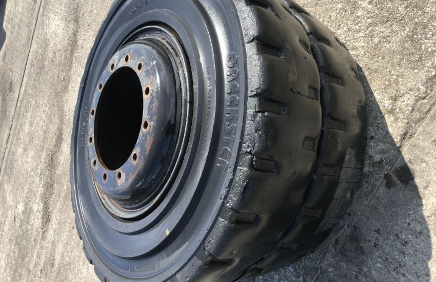 2x 1400-24 solid wheels and tyres, 12 stud wheel rims, from Hyster container handler