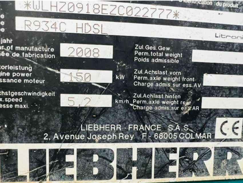 LEIBHERR R934C TRACKED EXCAVATOR C/W QUICK HITCH & BUCKET