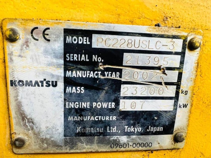 KOMATSU PC228USLC-3 EXCAVATOR * ZERO SWING * C/W DEMOLITION GARUDS