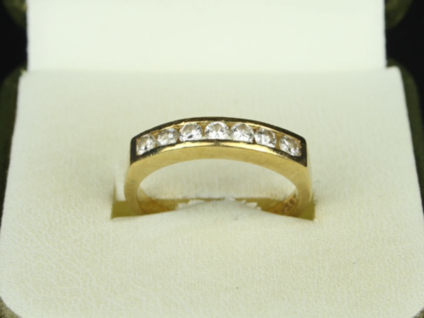 Here for sale, we have this magnificent ladies half eternity ring made from 18ct yellow gold channel set with seven lovely brilliant cut diamonds weighing a total of approx 0.50ct.