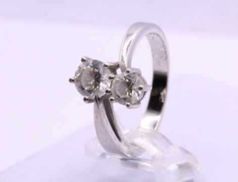 Here we have a magnificent sterling silver bypass ring with sparkling simulated diamonds.