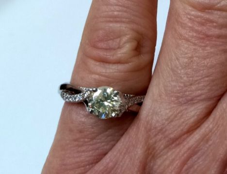Representing luxury, beauty and unrivalled value, this ring is simply sensational with its 0.97CT diamond encased with diamond set twist in white gold.