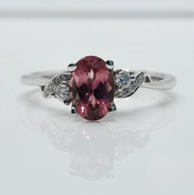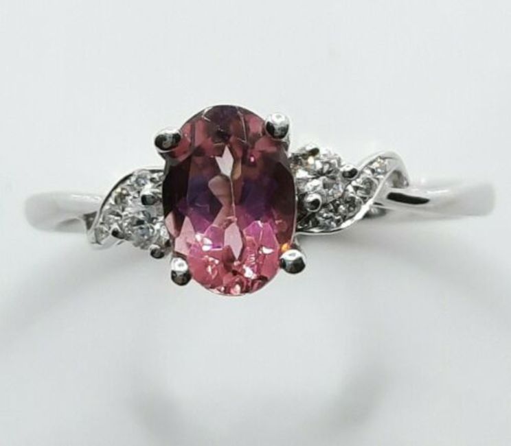 The romantic pink sapphire stone in this spectacular ring is complemented perfectly by Quality Diamonds . This pretty ring would make a sensational engagement ring and the chic design is finished off with a glossy 18K white gold band.
