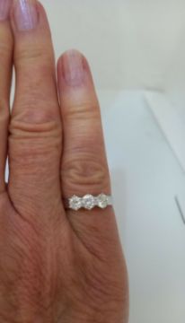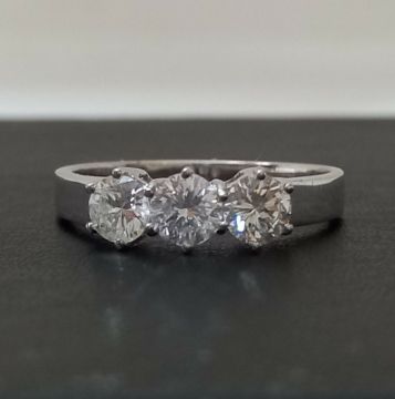 Show your eternal love with this 0.87carat diamond ring. Three round brilliant cut diamonds sit together on a polished 18ct claw set band.