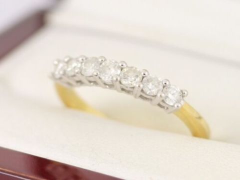 Here for sale we have this magnificent ladies seven stone ring, seven gorgeous brilliant cut diamonds weighing a total of 0.50ct set on a lovely 18ct yellow gold.