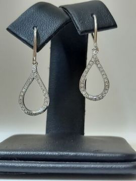 These exquisite drop earrings are beautifully crafted in 9ct White Gold. The bottom of the earring adorns 24 round brilliant cut Diamonds to add a glamourous sparkle to this design. The earring is secured in the ear with a hook.