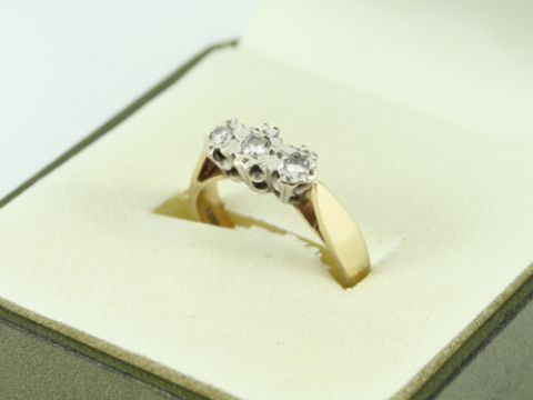 Here for sale, we have this magnificent ladies trilogy ring. Three beautiful brilliant cut diamonds set on a lovely 9ct yellow gold shank.