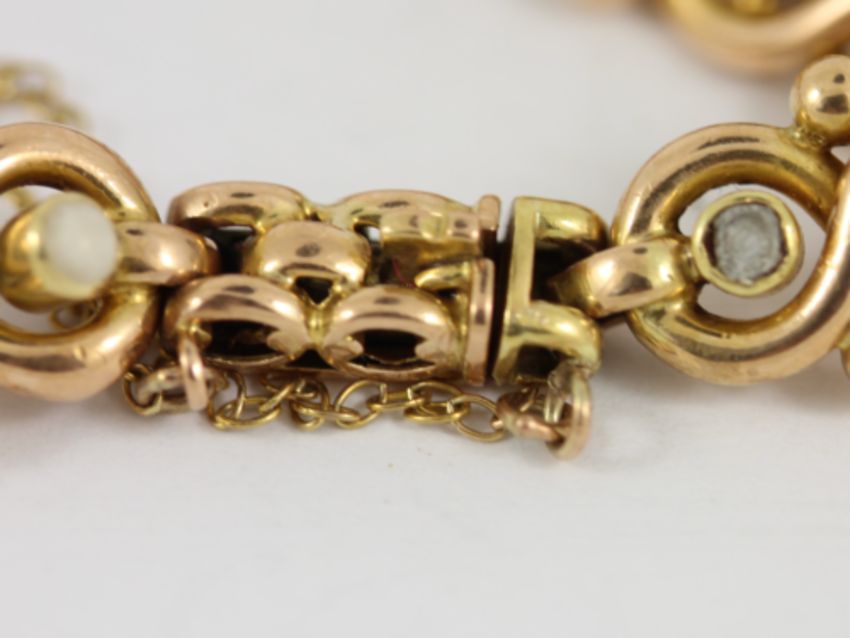Here for sale, we have this magnificent ladies bracelet. Made from 15ct yellow gold and set with lovely seed pearls and Tsavorite stones.