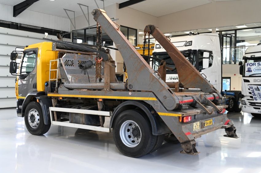 2015 (64) DAF LF250 Skip Loader, Euro 6, AdBlue, 4x2 axle on steel suspension, 3.7m wheelbase, manual gearbox, Hyva skip loading equipment, light guards, upright exhaust, easy sheet, storage lockers, steel bumper, visor, roof beacons, day cab, rear window, 2 seats, air con, onboard weighing system, camera system, DAF stereo, MOT December 2022, great condition. Choice available.