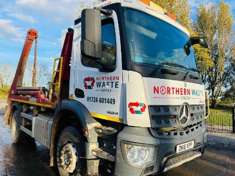 MERCEDES AROCS 4X2 SKIP LORRY * YEAR 2016 * C/W HYVA LIFT & SUPPORT LEGS