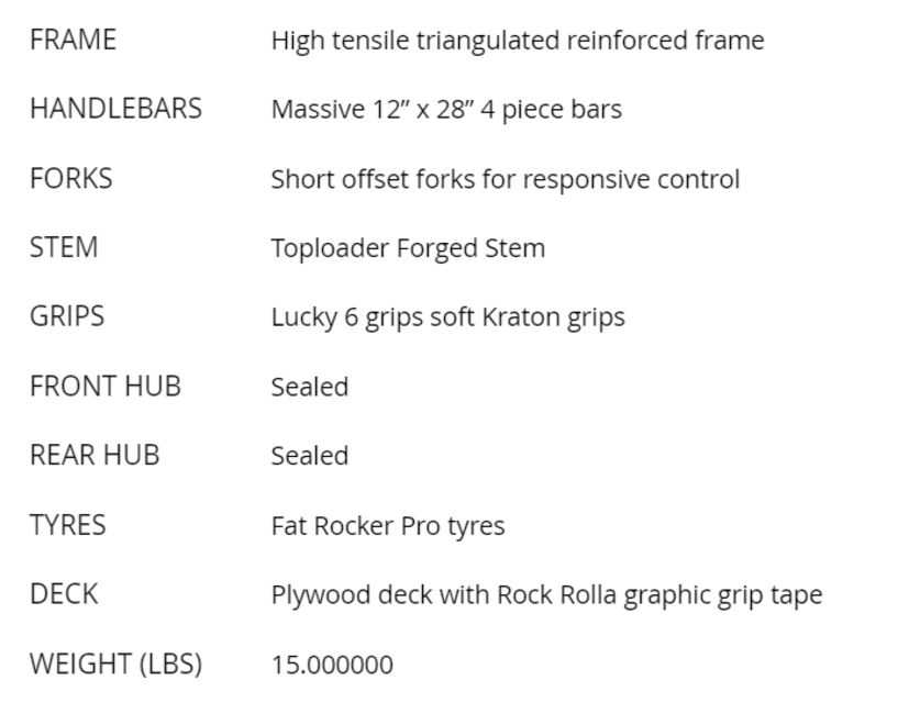 Rocker Rolla is the next generation of scooter designed for a mix of BMX and scooter tricks! Big bars, chunky tyres and designed to take some serious abuse!! Taking hints from the 80’s scootex craze, we mixed up some retro lines with modern bmx/scooter geometry that simply works. Wide deck and long wheelbase make the Rolla stable at high speeds and during grinds, while the sealed cartridge bearings will keep the wheel spinning smoothly and reliably. Short offset forks help out the front end balance point (for nose manuals) and keep the Rolla agile and quick to respond. Whether young or old you’ll be able to jump on the Rolla and have a blast carving hills or honing new tricks at the skatepark.