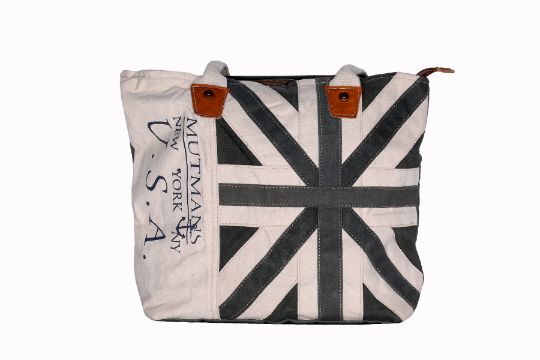 COTTON DHURRIE WITH COTTON CANVAS AND LEATHER TOTE BAG