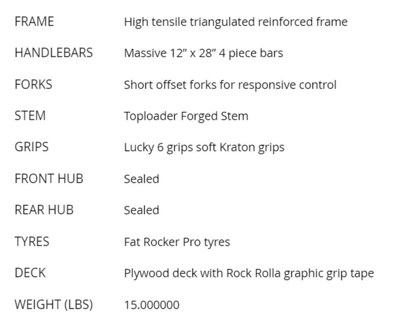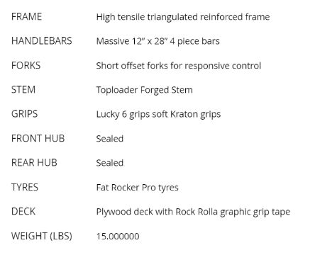 Rocker Rolla is the next generation of scooter designed for a mix of BMX and scooter tricks! Big bars, chunky tyres and designed to take some serious abuse!! Taking hints from the 80’s scootex craze, we mixed up some retro lines with modern bmx/scooter geometry that simply works. Wide deck and long wheelbase make the Rolla stable at high speeds and during grinds, while the sealed cartridge bearings will keep the wheel spinning smoothly and reliably. Short offset forks help out the front end balance point (for nose manuals) and keep the Rolla agile and quick to respond. Whether young or old you’ll be able to jump on the Rolla and have a blast carving hills or honing new tricks at the skatepark.
